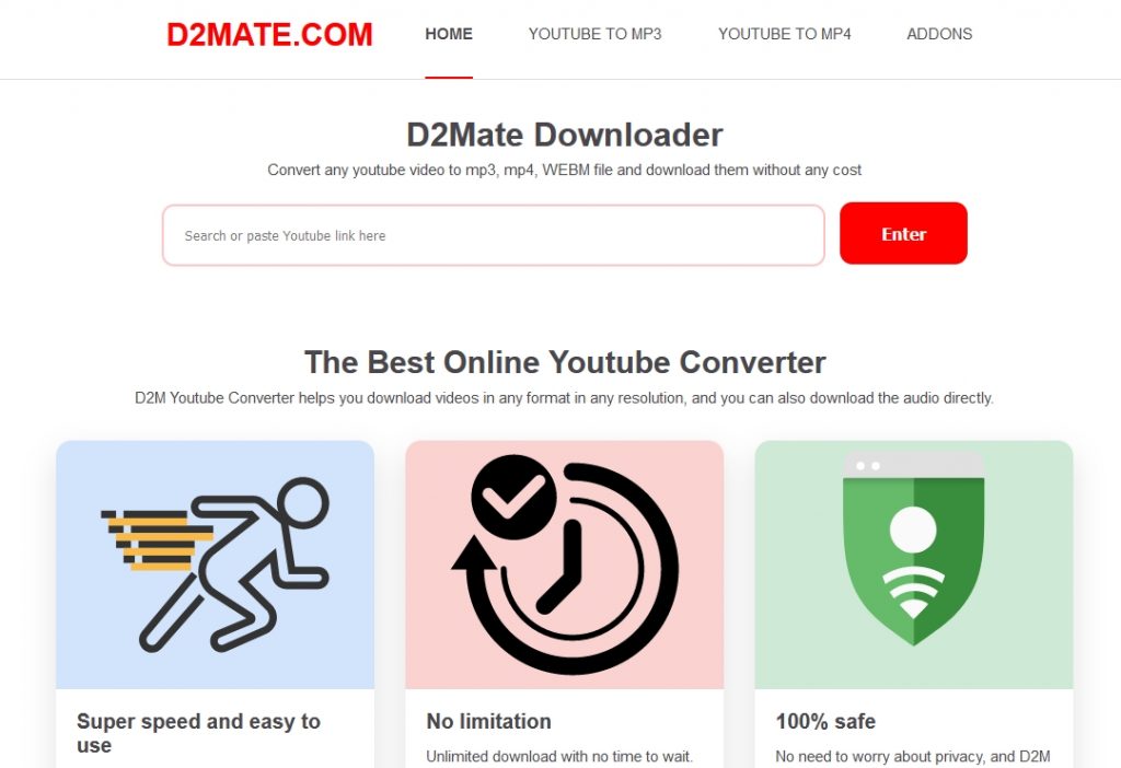 D2Mate is Best Youtube to mp3 converter helps you download videos in any format in any resolution, and you can also download the audio directly.